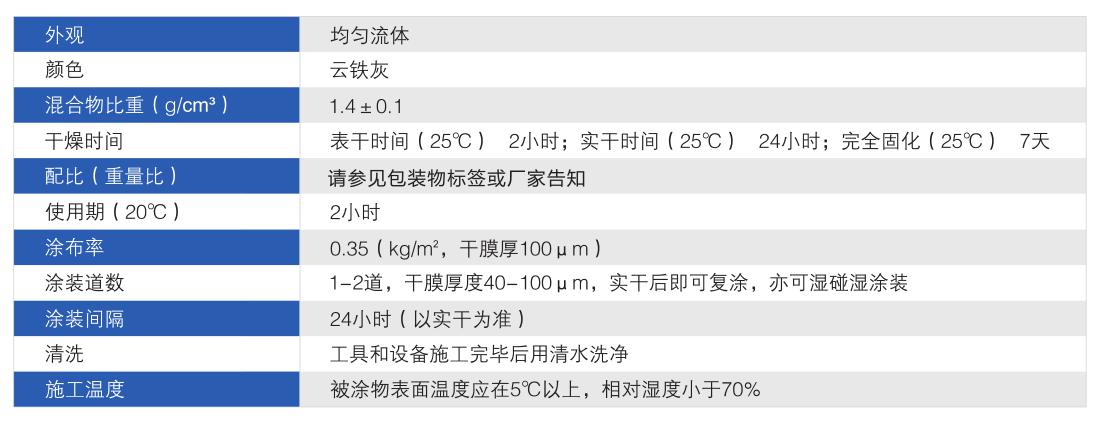 ■涂裝方法 The coating method配比(重量比)甲:乙=7:1,將甲按比例緩慢加入乙中攪拌均勻,混合物的適用期為2小時(shí),混合物超過2小時(shí)后不得再使用,(夏季溫度偏高,適用期會(huì)適當(dāng)偏短)。